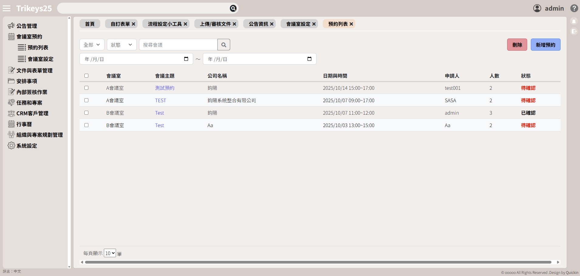 五、會議室預約及訪客預約